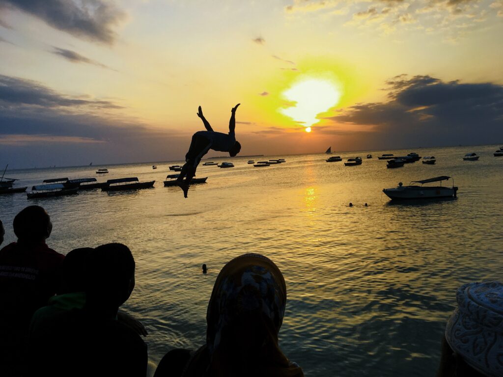 One of my favourite places is Zanzibar because I can sit for hours and watch sunsets over clearwater / beach disappearing into faraway skylines that form these beautiful hues at different times before the sun disappears completely. I believe I’m deeply connected with sunset and it’s something that connects many people on that little island. Just before sunset or after the sun sets, a crowd begins to form as young boys dive and backflipping into the water. It feels magical, I appreciate the beauty of life during sunset. Seeing these young boys enjoying their time in the water is everything, and these memories will forever remain with me. Spending time at a ginger tea spot also led me to meet many people and have meaningful conversations about life in Africa and what it means to understand one’s culture and languages.