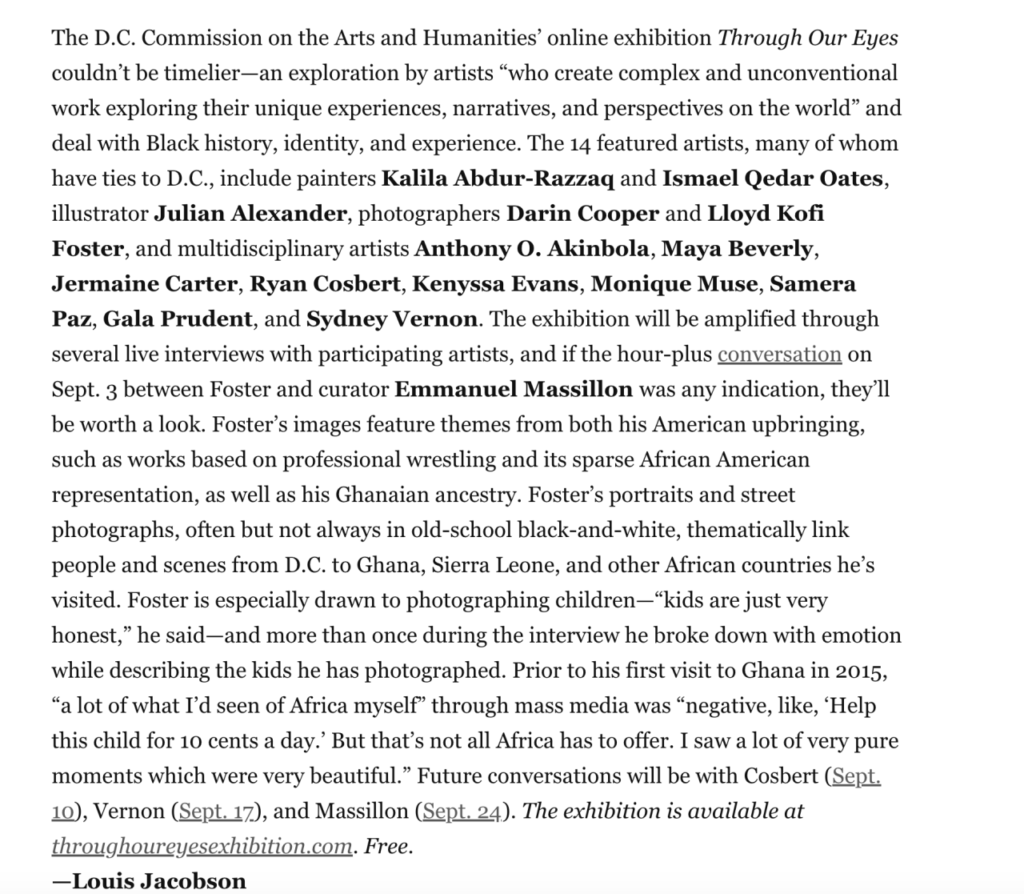 My name is Lloyd Foster. I’m a visual artist working primarily in photography and film. I’m currently a graduate student at NYU pursuing an MFA in Studio Art. I grew up in Prince George’s County, Maryland to Ghanaian parents.