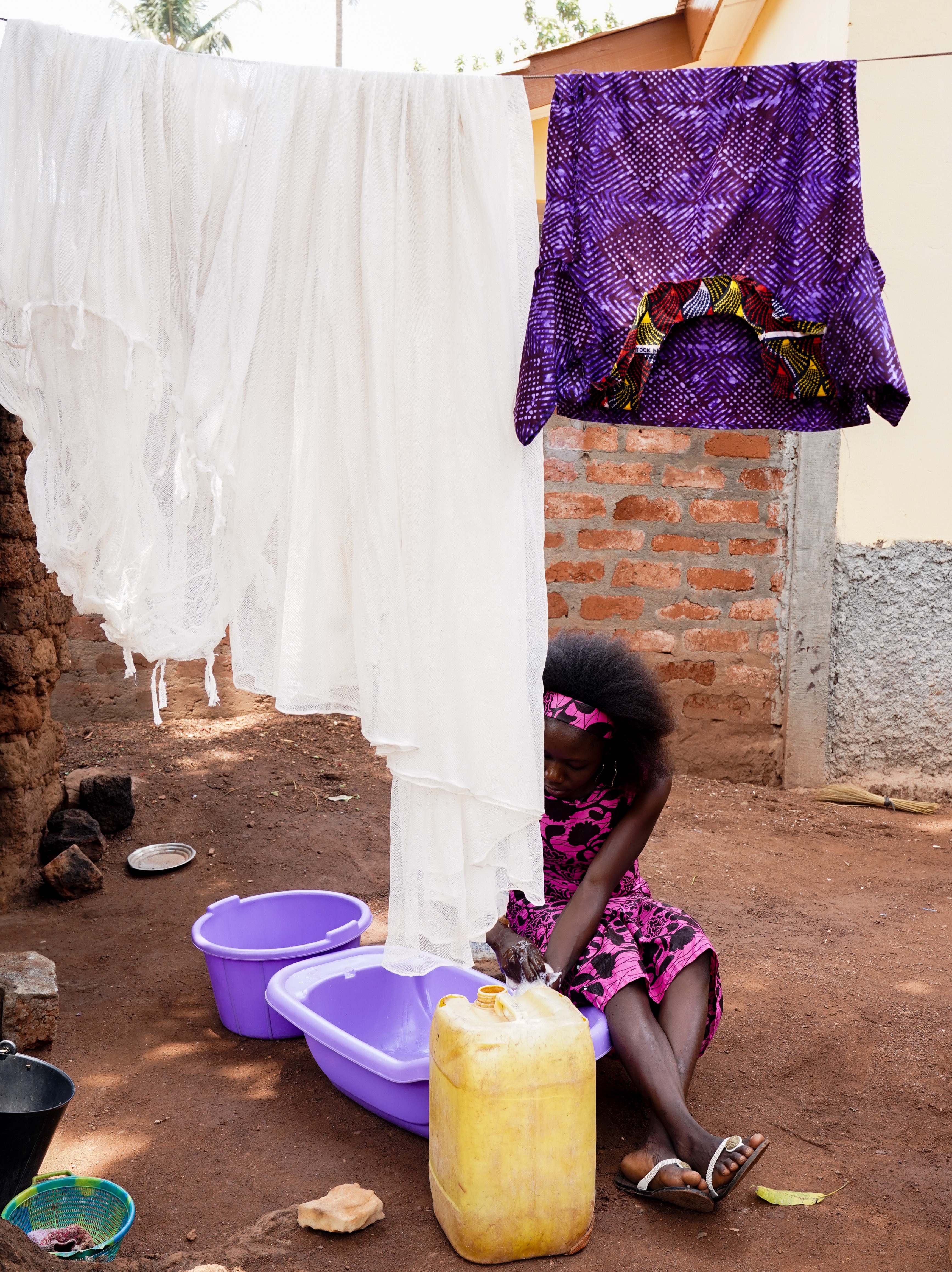 I love them all to be honest, but if there was one that I believe stands out is the one where you can see a girl washing clothes. To celebrate Women’s Day I was working with a local company named Ndara Ti Beafrika which makes various products out of wax and also employs women workers and teach them how to become entrepreneurs from teaching them the basics of education to teaching them how to sew. To do that I went to each women’s home to take portraits of them and their family, the goal was to show how the work they did at Ndara contributed to their emancipation and to put a light on their family. This girl is one of the daughters of a worker named Marlyse. I love this shot because it is a great example of our culture, and it shows the values that Marlyse is teaching to her daughter. It also shows the precarity in which these families must live; she’s washing her clothes with a mere gallon of water which means she must refill it every time it ends but there’s a certain sense of tranquillity that remains from the picture. Her daughter seems to be enjoying the task at hand which in a way defies the idea that African children are exploited which in certain cases is true.