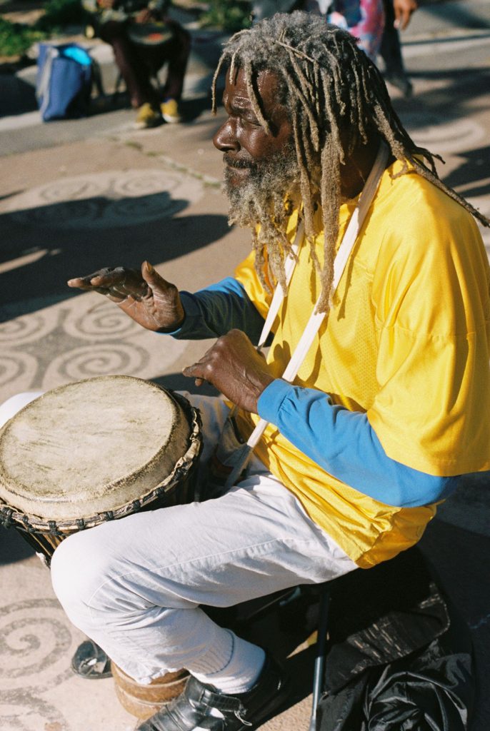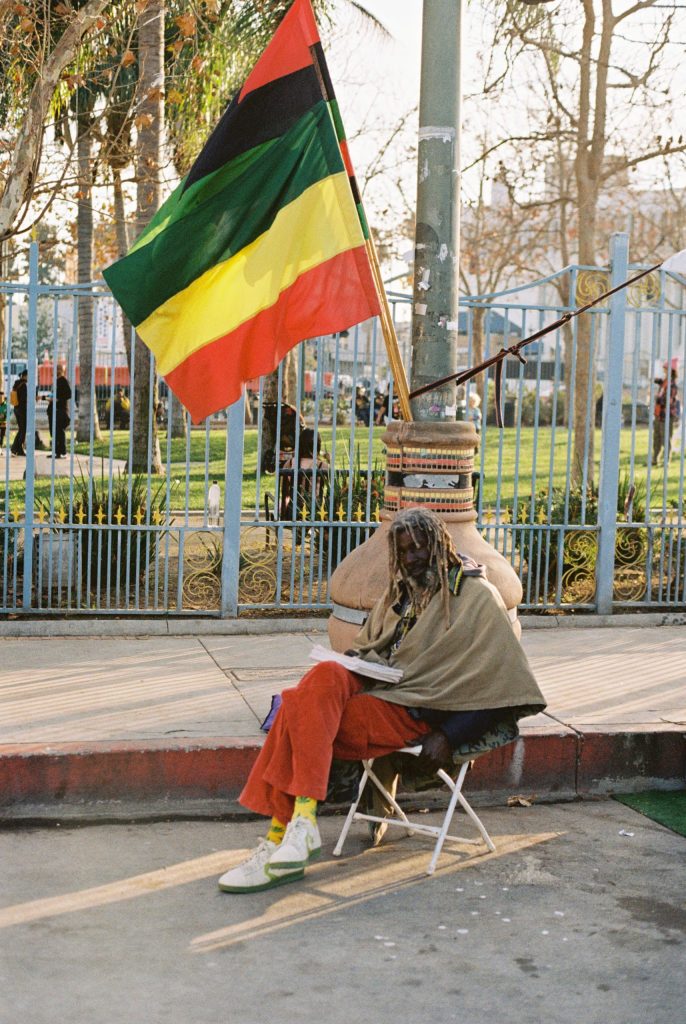To be honest, every photo that I shoot and put out into the world is my favourite because I refuse to show things I don’t like or connect with. But out of this series, maybe the one where everyone’s wearing orange and something is happening in the foreground and background. It is from the annual ancestor festival in Leimert Park called “Festival of Masks” and it’s a community arts event and parade that celebrates our newfound ancestors from the community, young and old. The orange group represented a close friend of mine Amber who passed in her early 20s. This particular photo hits a lot of the marks I try to make when shooting so it’s pretty special to me.