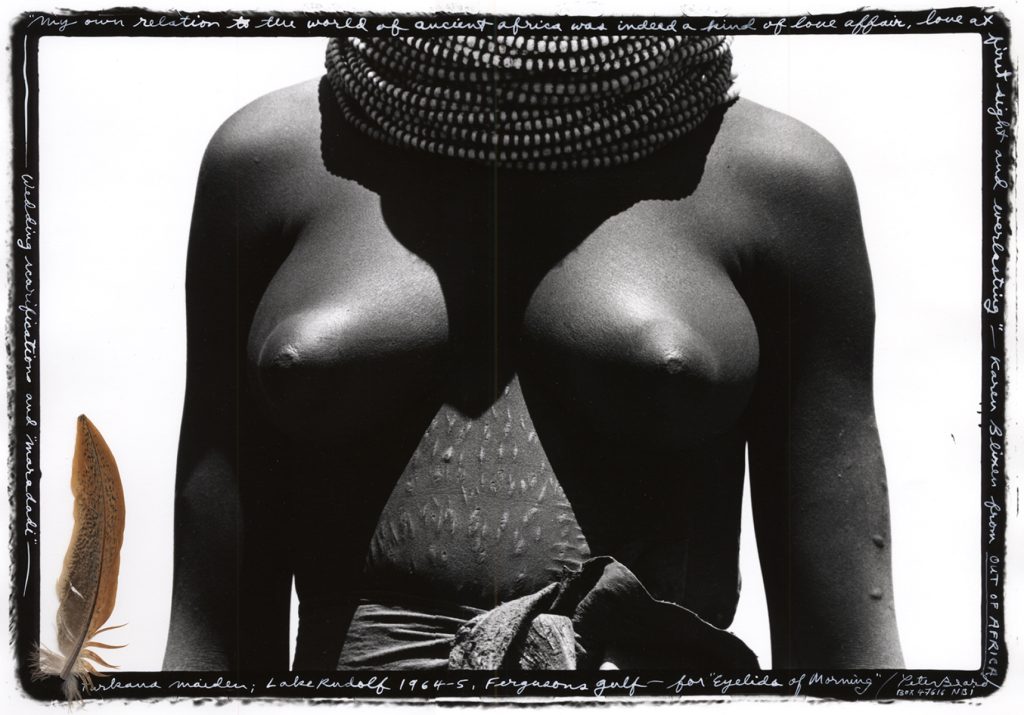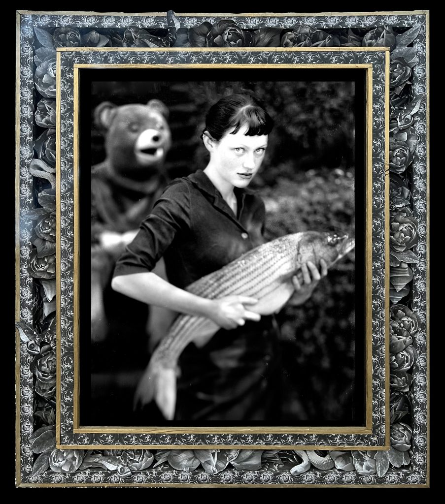 A clear affection for collage runs throughout Nicholas Fahey’s collection, most notably in the works of Peter Beard, Turkana Maiden, Lake Rudolph (1964–65), Janice Dickinson and Leni Riefenstahl, and Michael Garlington’s The Fishmonger’s Daughter (2000). These black-and-white prints, rendered on both toned and standard silver gelatin paper, possess a tactile materiality that reinforces the intimacy of their imagery.