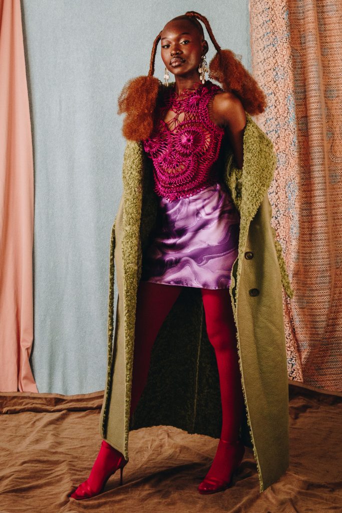 Korlekie is a British-Ghanaian fashion label that stands at the intersection of tradition and modernity. With the name deriving from the Ghanaian Ga-Adangbe phrase meaning “Queen of Eagles,” the brand expresses a strong sense of lineage, identity and elevation. Under the creative direction of Beatrice Korlekie Newman, the label uses intricate craftsmanship, particularly crochet, lace, and finely crafted knitwear, to reinvent corsetry, silhouettes and luxury garments. At its heart, Korlekie’s aesthetic is defined by tension and balance: softness and structure, handmade detail and wearable strength, cultural heritage and global relevance. One of the brand’s recurring technical signatures is the use of silken cord and circular crocheted motifs that echo both feminine form and architectural rhythm. This material intelligence transforms garments into something more than clothing, they become statements, crafted vestiges of culture, texture and form. A post for example describes a piece as “the design was intentional. The craftsmanship, deliberate.”