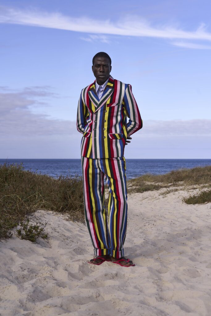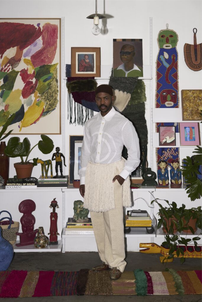 The Spirits collection by Wanda Lephoto is a profound celebration of community, heritage, and the human spirit. Rooted in the designer’s belief that “I am because we are,” the collection places family, friendship, and creative kinship at its heart. Tailoring takes the lead with heavy linen overcoats, Ghanaian woven suits, and raw denim sets cut with precision and imbued with symbolism through Zulu emblems and the word Sunsum, Akan for “soul” or “spirit”, printed across shirting. The palette and form reflect both legacy and innovation, combining rich craft with contemporary voice. Rather than simply using models, the campaign gathers peers, friends, and family. Fellow creatives such as crystal milliner Crystal Birch, stylist Masego Morgan, and designer Lukhanyo Mdingi appear wearing pieces from the collection, underscoring how the creative circle becomes part of the work. Spirits tells a layered story. It honours ancestral craft and shared memory while looking to the future, inviting wearers and makers into a space where identity, expression, and belonging are intertwined. In every seam and stripe, Wanda Lephoto seeks to render clothing as more than fashion, as testimony, as connection, as a vessel for spirit. For creatives observing the collection, the lesson is clear. Let your work be anchored in community and past but build it toward openness and possibility. Let form reflect story, let craft reflect intention, and let identity remain expansive rather than constrained. In Spirits, the art of fashion becomes the art of together.