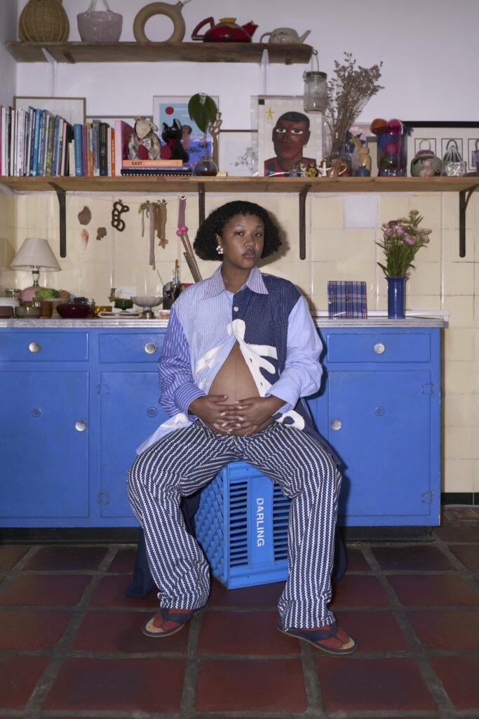 Another key element of Wanda Lephoto’s craft is the way they integrate community and collaboration into the production of imagery. The people photographed often are not just models, but participants in a broader network, a community of makers, thinkers, and friends. That ethos shifts the style from the cold lookbook aesthetic to something warmer and more resonant. They have described how the collective’s success is shared, and how in struggle the experience can be isolating. “When we win we win together, but when we lose we lose alone,” they reflect. This sense of collectivity appears in the photography, images where garments are tethered to people, places, and stories communicate a deeper narrative. In practical terms, the staging and environment for their campaigns often lean into architecture, thrift culture, migration narratives, and lives in motion. For their Our People collection, showcased at the salon style event at the Cape Town hotel The Mount Nelson, A Belmond Hotel, they described watching migrant families in Johannesburg move through space, Sunday traditional dress, Monday work suits, packed bags led back home. The photographic output reflects that multi-layered lived experience, in the mix of accessories, location, poses, and gestures, one sees a narrative of movement and place.