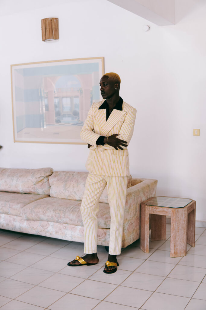 Heritage, within this context, is not treated as a motif or a talking point. It is a living resource. Kente cloth, which is so often reduced to a symbol of West African identity, is approached with a deeper sensitivity. On the brand’s feed, the fabric appears in closer detail: threads pulled through the loom, artisans weaving with a focus that feels almost ceremonial, finished textiles that move with a soft authority. The tailoring that follows is quietly contemporary. A handwoven blazer sits neatly on the shoulder. A structured dress falls with clean purpose. A jacket rendered in rich vermilion looks as sharp as the silhouettes found on major runways but carries a distinctly Ivorian sensibility.