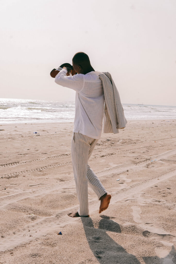 The visual world that surrounds these garments feels inseparable from Abidjan itself. Courtyards washed in afternoon light, textured walls, and streets that glow in muted earth tones appear throughout the brand’s imagery. The color palette mirrors this environment, drawing from terracotta, indigo, dusted greens, and soft brick hues. Yet nothing is exaggerated or overly romanticized. What comes through instead is a grounded realism, a sense that beauty exists in the ordinary. Community remains the quiet heartbeat of Kente Gentlemen. Many of the fabrics are woven in partnership with artisans in Côte d’Ivoire and Ghana. The work behind each piece is visible on their page, not as spectacle but as recognition. Hands at looms, tailors bent over cutting tables, and small teams assembling garments speak to a luxury grounded in craft rather than in excess. In this environment, the idea of luxury becomes synonymous with time, care, and cultural continuity.