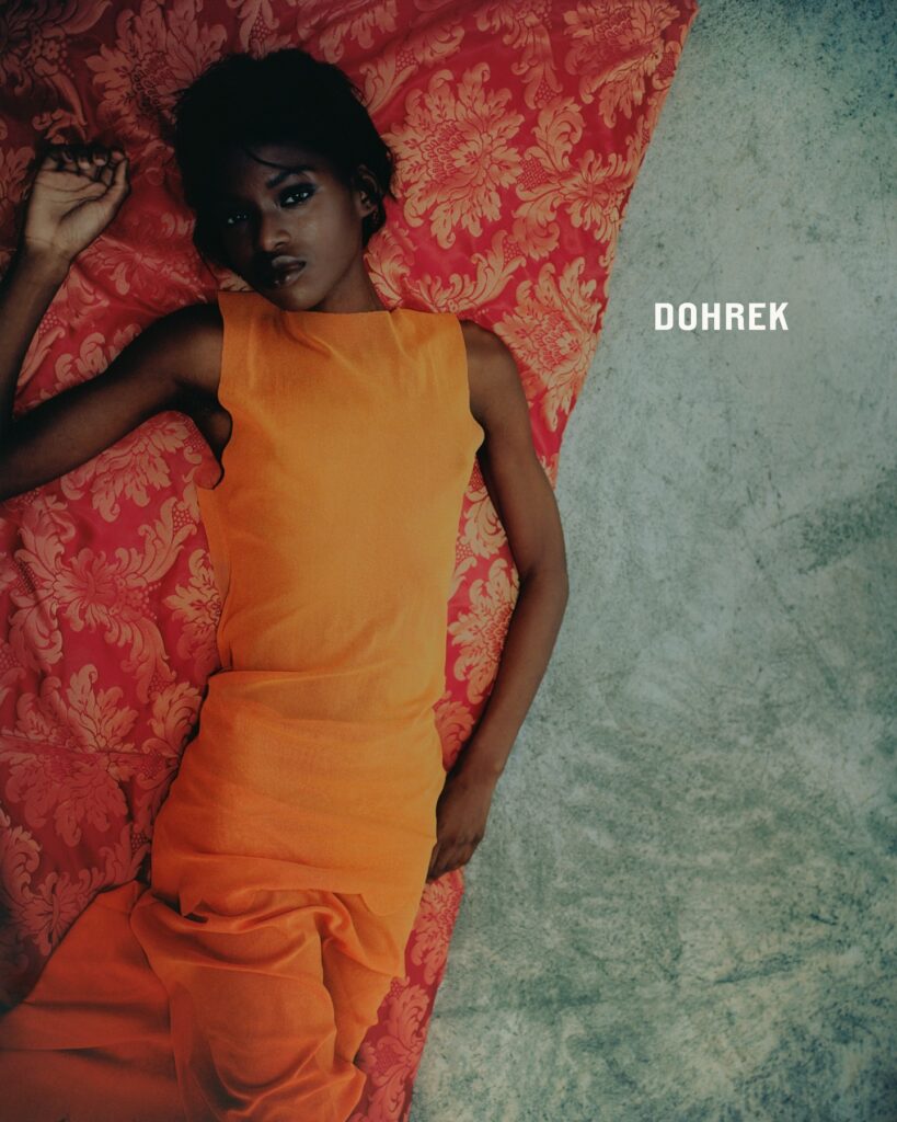 Dohrek enters the fashion landscape with quiet confidence, the kind that does not seek to impress through noise or spectacle but through intimacy. The brand feels like a soft conversation with the past, a meditation on identity, and an offering to the present. Every garment carries the echo of where it comes from and the clarity of where it wants to go. The story of Dohrek begins with its founder, Maty Ndiaye, whose work is guided by personal memory. The name Dohrek means mobile in Wolof, a word that captures both movement and evolution. For Ndiaye, inspiration came from the photographs and textiles that shaped her childhood in Dakar. These memories do not appear as nostalgia in her collections. They arrive as structure, as silhouette, as intention. The garments feel like an heirloom made modern. The world of Dohrek is defined by a gentle tension between softness and strength. Many pieces feel like visual recollections of family rituals and the quiet elegance found in everyday life. Flowing gowns, wrapped forms, and fabrics that drape with ease create a sense of warmth and familiarity. At the same time, there is a contemporary language present in cropped tops, sculptural cuts, and confident lines that remind you this is not a reconstruction of the past but a reimagining of it.