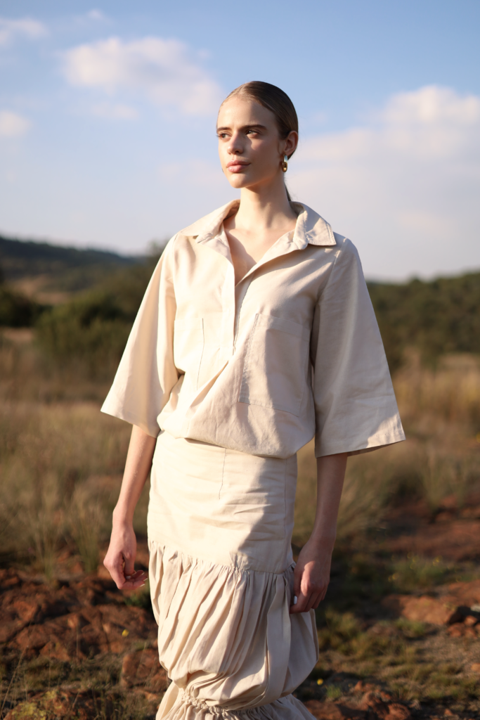 The brand’s social media presence reflects this vision; they showcase images that balance performance and product, studio exploration and runway impact. Viewers are invited into the creative process rather than just presented with finished pieces. From close-ups of intricate tailoring to wide shots of movement on the runway, the brand communicates that Sixx6 is as much about experience as it is about apparel, fostering an engaged, thoughtful audience. Sixx6’s participation in South African Fashion Week has further cemented its reputation for innovation, presenting collections that command attention not through spectacle alone but through conceptual depth. The runway becomes a platform for storytelling, where each garment conveys a narrative, whether it is about texture, form, or the interaction between tradition and futurism. The label demonstrates that bold design choices and conceptual fashion can coexist with a disciplined approach to production and presentation.