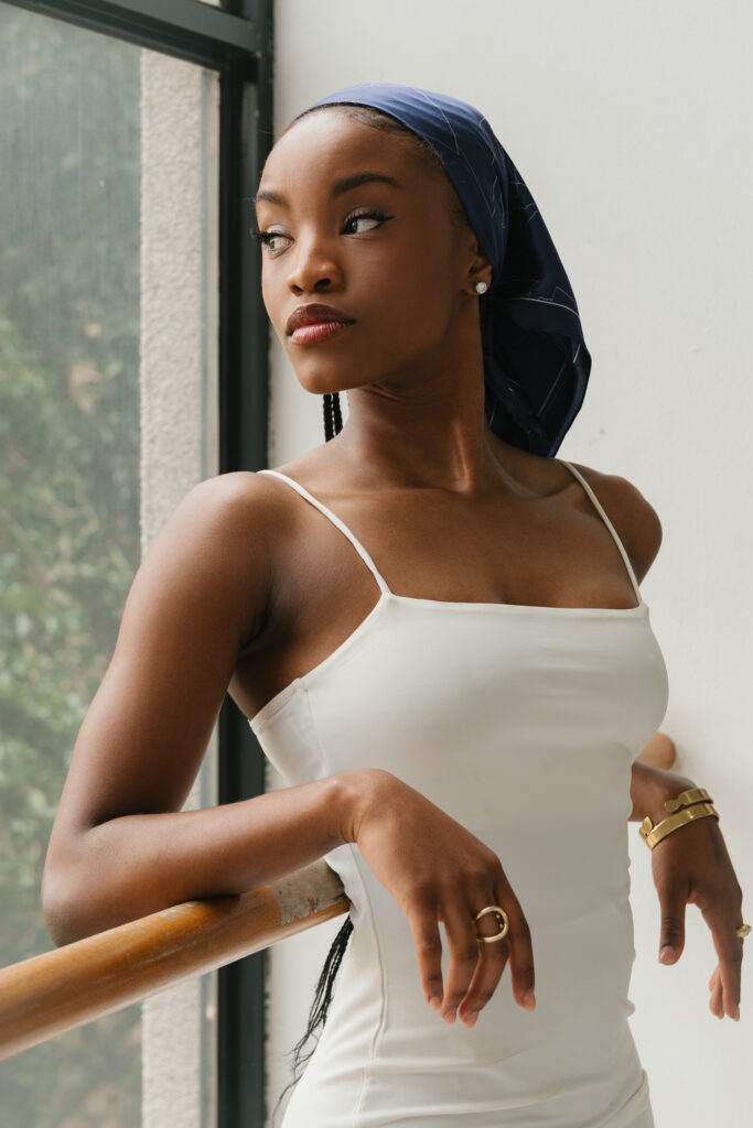 Material choice is central to the studio’s philosophy. Working primarily with silk, FHI Studio emphasises texture, weight, and movement, allowing the fabric to respond naturally to the wearer. The scarves are designed to live on the body, folds, drapes, and shifts with ease, becoming part of a daily ritual. Visually, the brand communicates with restraint. Online, FHI Studio presents its work through quiet imagery, soft light, and moments that feel lived-in. The scarves appear worn, held, tied, and reimagined, reinforcing the idea that each piece is completed by the person who wears it.