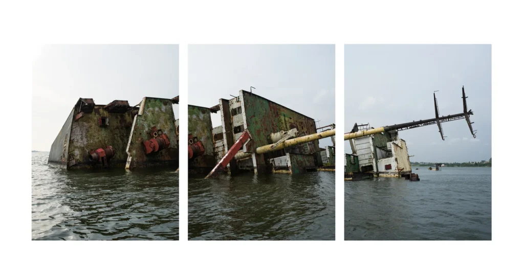 Working between France and Côte d’Ivoire, Gbré documents architecture and landscapes to reveal the traces of history and rapid urban transformation embedded in everyday spaces.